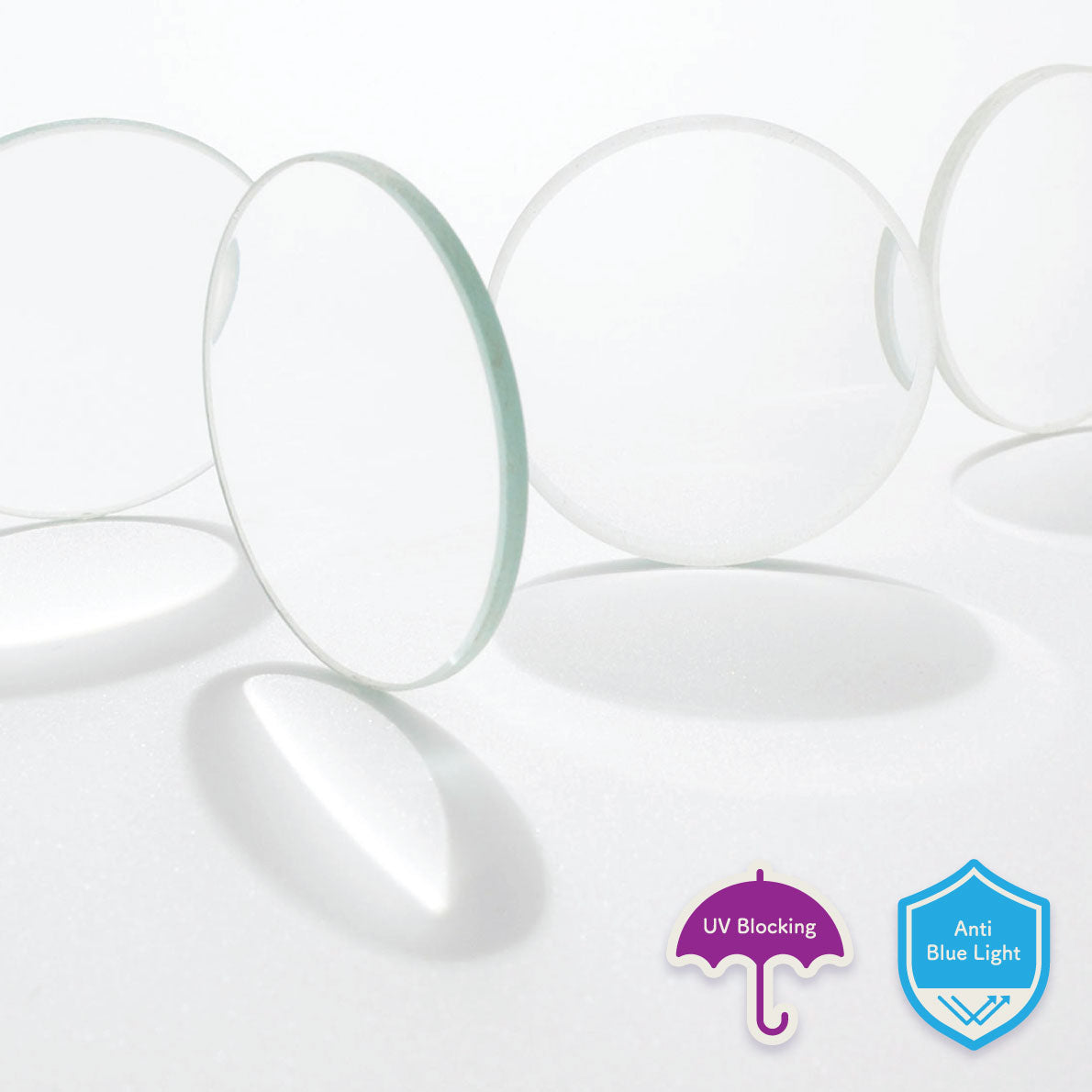 Anti-blue light lenses provide both blue light and UV protection without irritating reflections.